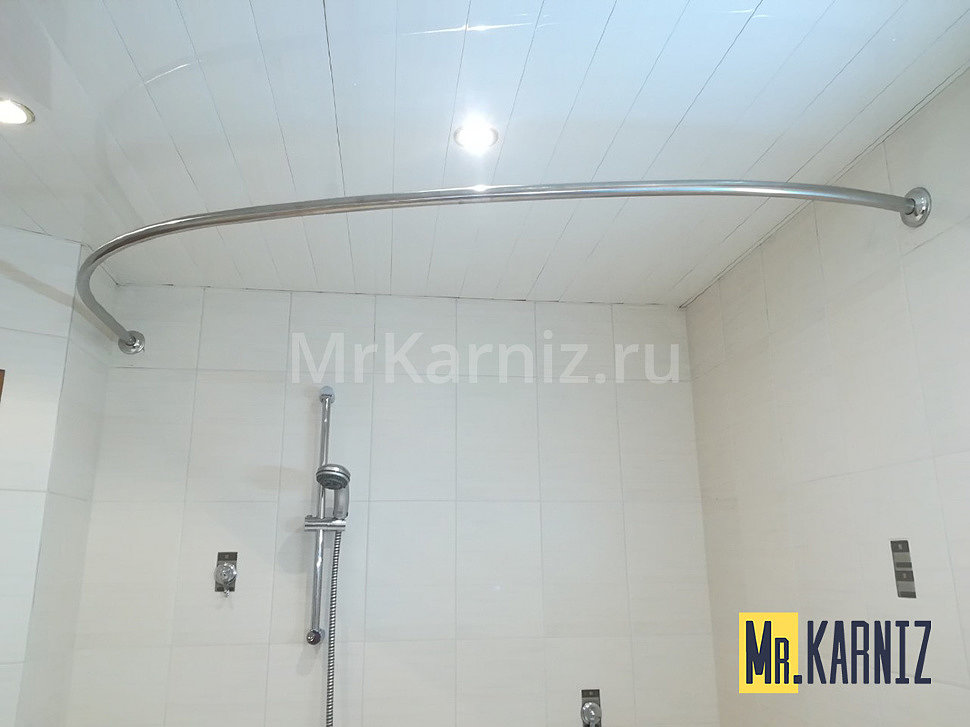 Основой штанги является цельная стальная труба. На этапе производства ей задают требуемую форму, ориентируясь на размеры бортика ванны. Крепят карниз на кронштейны, закрепленные в стенах саморезами/шурупами, или на поворачиваемые крепления к потолку. Второй способ используется реже.